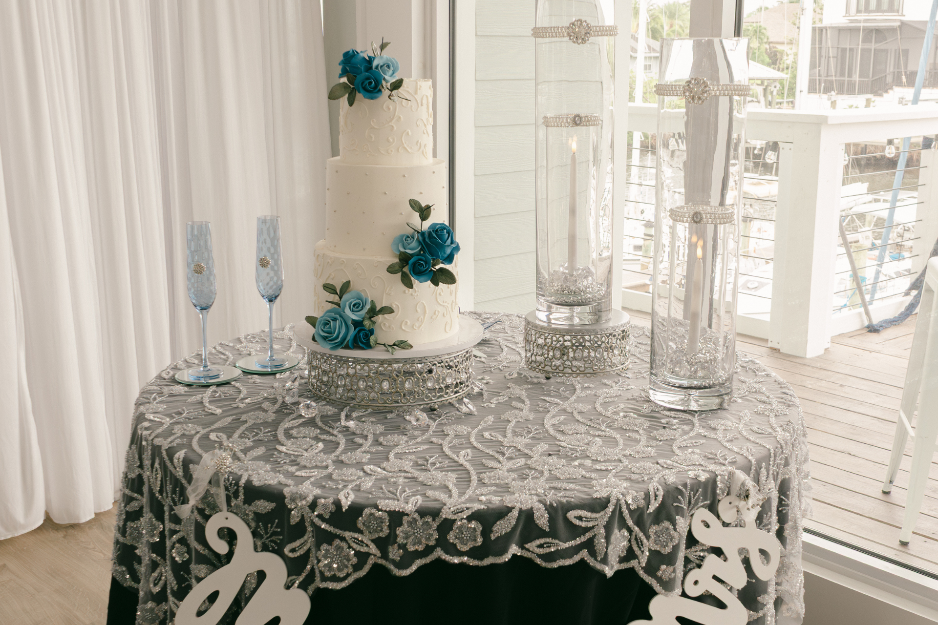 At The Venue at Apollo Beach Marina, elegance meets coastal charm. Designed with thoughtful details and decorated in soft seafoam greens, serene blues, and touches of gold, the space reflects the beauty of its marina setting. Guests enjoy panoramic views, a wraparound deck, and a relaxed, elevated atmosphere that feels intimate and unforgettable.
